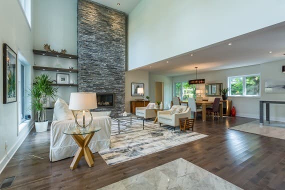 Le salon présenté dans la photo de couverture de cet article a été réalisé par Construction M.Dubé.